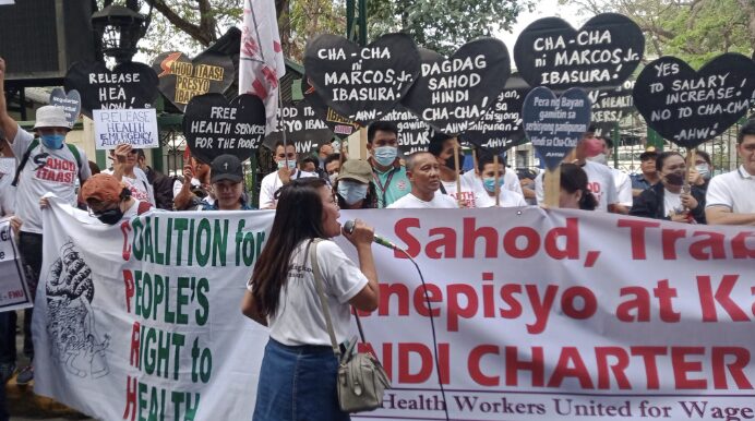 Les professionnels de santé luttent non seulement pour un système de santé accessible, mais aussi pour leurs droits. Iels travaillent dans des établissements sous-financés et en sous-effectif, avec des salaires bas (13 000 Php, soit 233 USD), bien en dessous du salaire moyen de 36 480 Php (655 USD). En plus de mauvaises conditions de travail, ces travailleurs sont confrontés à la répression de l’État en raison de leur militantisme.