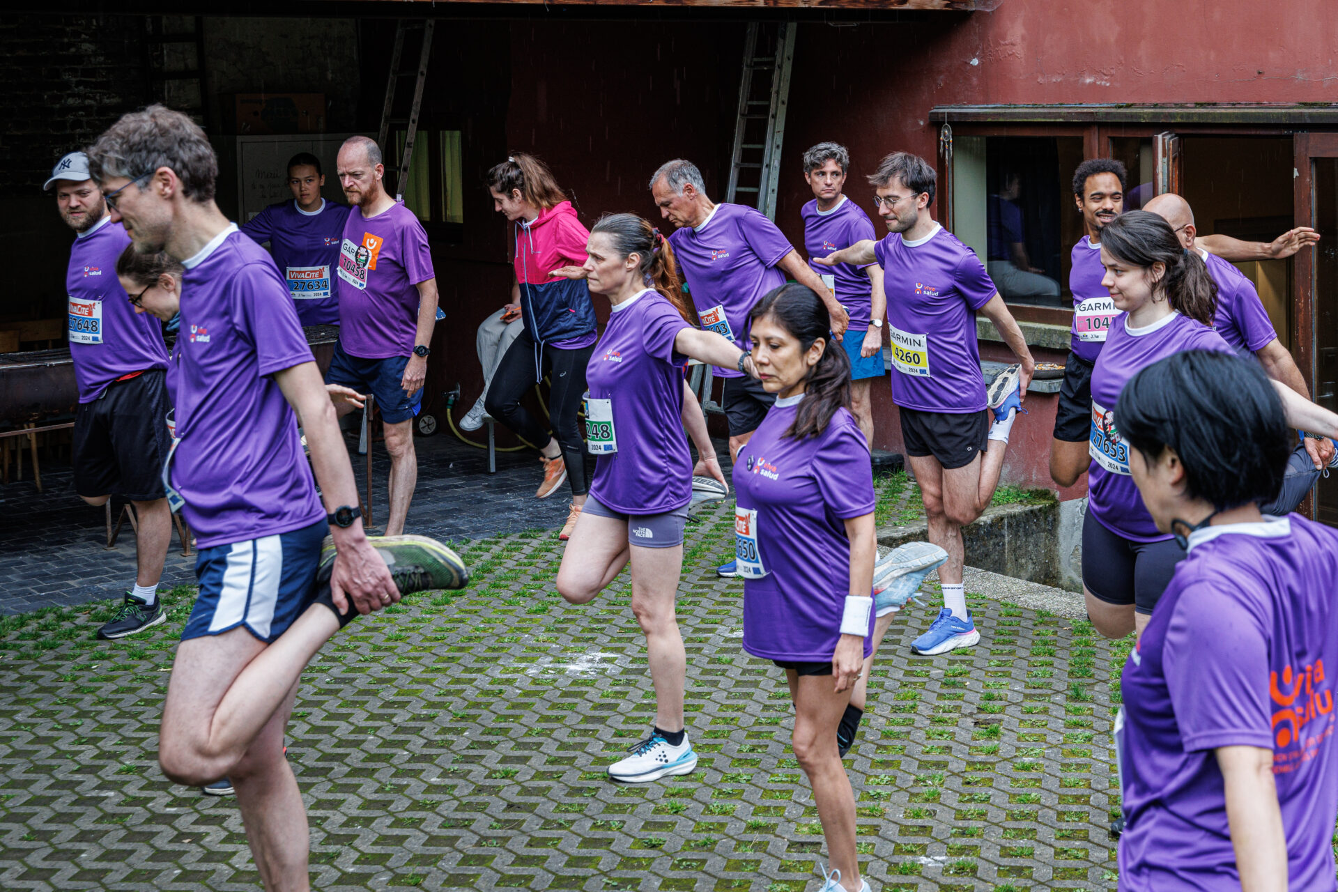 - d’un en-cas et une session étirement avec l’équipe complète avant la course,