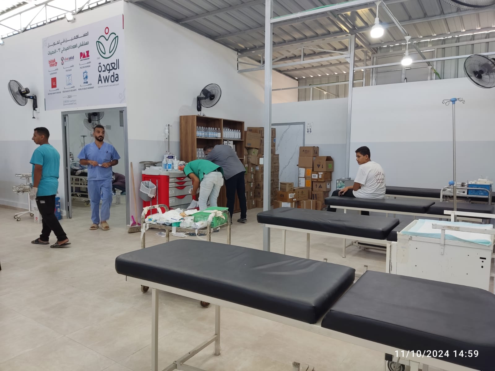 Après les invasions israéliennes au nord (Jabalya) et au sud (Rafah), le centre de Gaza a été inondé de personnes déplacées. Avant la guerre, la population du centre de Gaza était estimée à 320 000 personnes. Aujourd’hui, environ 940 000 personnes cherchent refuge dans le centre de Gaza. L’hôpital d’AWDA à Al Nuseirat, au centre de Gaza, travaille donc à 400 % de ses capacités. En réponse à cette situation, le personnel d’AWDA a décidé de construire un hôpital de campagne qui devrait être en mesure d’alléger la pression et de fournir des services de santé à environ 15 000 patient⸱e⸱s par mois. L’hôpital couvrira une superficie de 1 320 m² et comprendra un service d’urgence d’une capacité de 23 lits, un service de consultation externe pour étendre les services d’obstétrique et de gynécologie, ainsi qu’un service d’hospitalisation portant la capacité à 110 lits.
